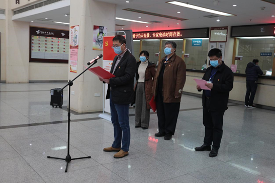為堅決打贏新型冠狀病毒感染的肺炎疫情防控阻擊戰(zhàn),郴州市中醫(yī)醫(yī)院不斷拓展“不忘初心,牢記使命”主題教育“新載體”,堅持疫情防治任務延伸到哪里、黨的組織和黨的工作就覆蓋到哪里,2月7日下午3點,醫(yī)院在門診大廳舉行了新冠肺炎醫(yī)療救治“黨員先鋒隊”成立暨授旗儀式,儀式由黨委副書記、院長李勇主持,院領導班子成員、醫(yī)療救治黨員先鋒隊隊員、黨支部書記參加儀式。院黨委書記謝天喜出席儀式并作動員講話。