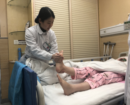 責(zé)任護士為海燕做涌泉穴拍打,指導(dǎo)做踝泵運動,配合做氣壓治療、穿壓力襪等措施,預(yù)防靜脈血栓,