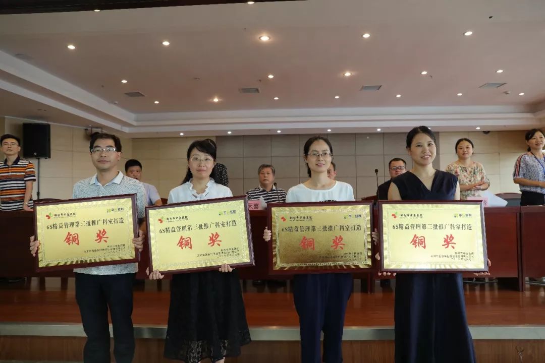 隨后,院領(lǐng)導(dǎo)為第三批樣板科室頒發(fā)“金、銀、銅獎(jiǎng)項(xiàng)”,并為第四批推廣科室——放射科、制劑室與加工廠(chǎng)、中藥房與藥材庫(kù)房、口腔科、體檢中心與治未病中心、功能科負(fù)責(zé)人授牌。
