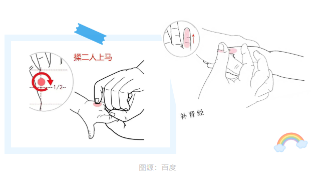揉二馬、補(bǔ)腎經(jīng)等手法能補(bǔ)腎益精,促進(jìn)骨骼和智力發(fā)育。二馬穴位于手背無名指及小指掌指關(guān)節(jié)后凹陷中,揉二馬有滋陰補(bǔ)腎、順氣散結(jié)的功效;補(bǔ)腎經(jīng)是在小指末節(jié)螺紋面,由指尖向指根方向直推,可補(bǔ)腎益腦,溫養(yǎng)下元。